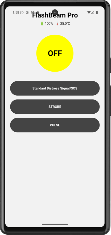 Aplikasi Flashbeampro merupakan aplikasi ataupun bisa dibilang alat yang sangat bermanfaat bagi pribadi anda, yang mana bisa difungsikan sebagai senter, SOS, Stobo dan pulse. Flashbeampro memanfaatkan flash kamera dari smart phone yang digunakan.